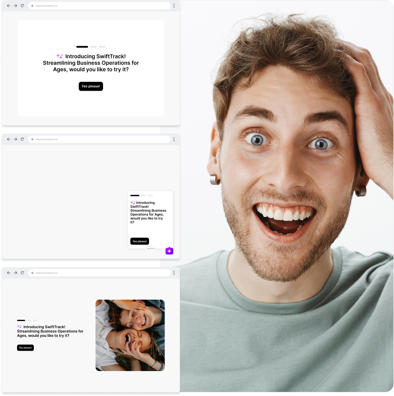 Embed FormAI anywhere—add it as a floating widget, place it inline on your site, or grab attention with sleek modal popups that boost engagement.